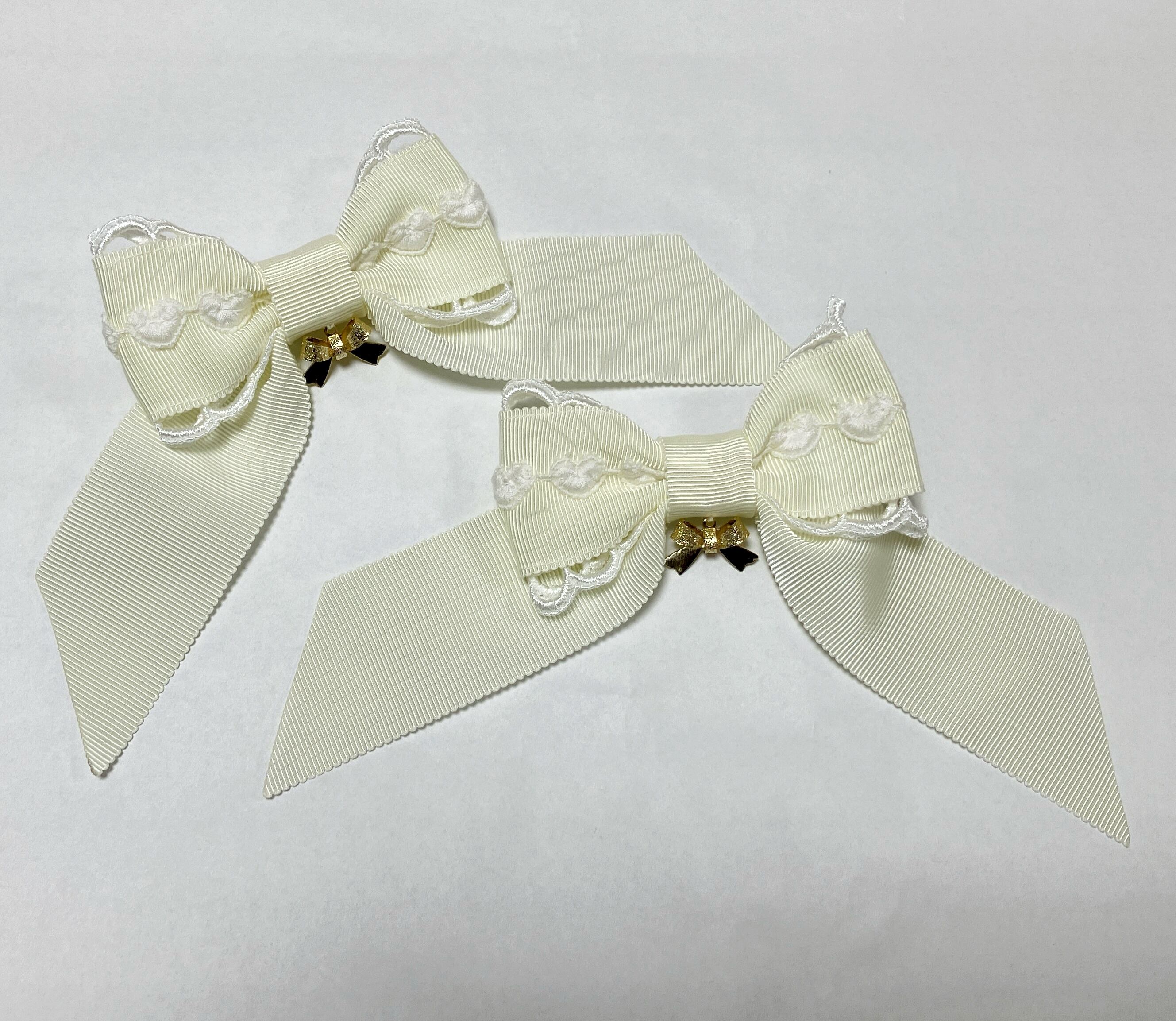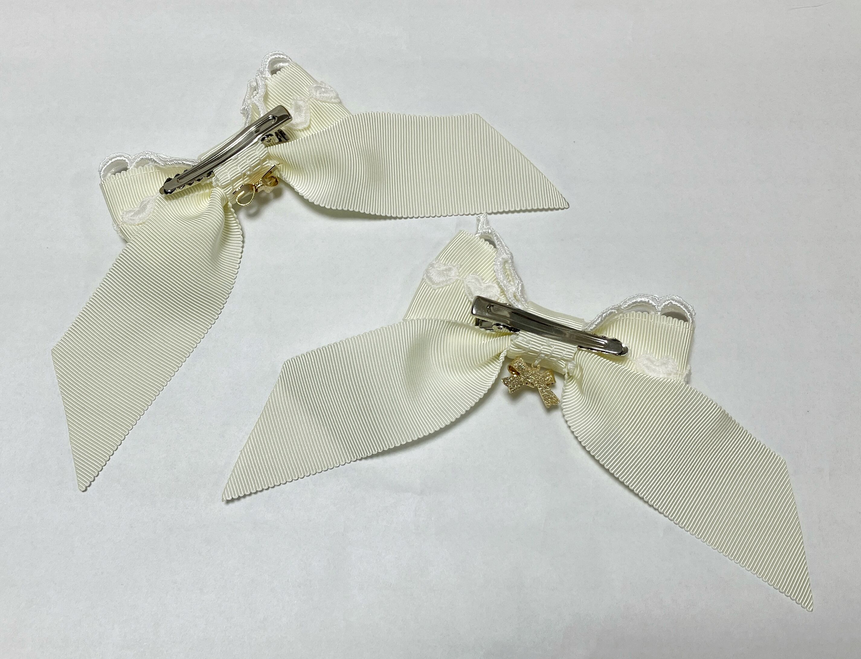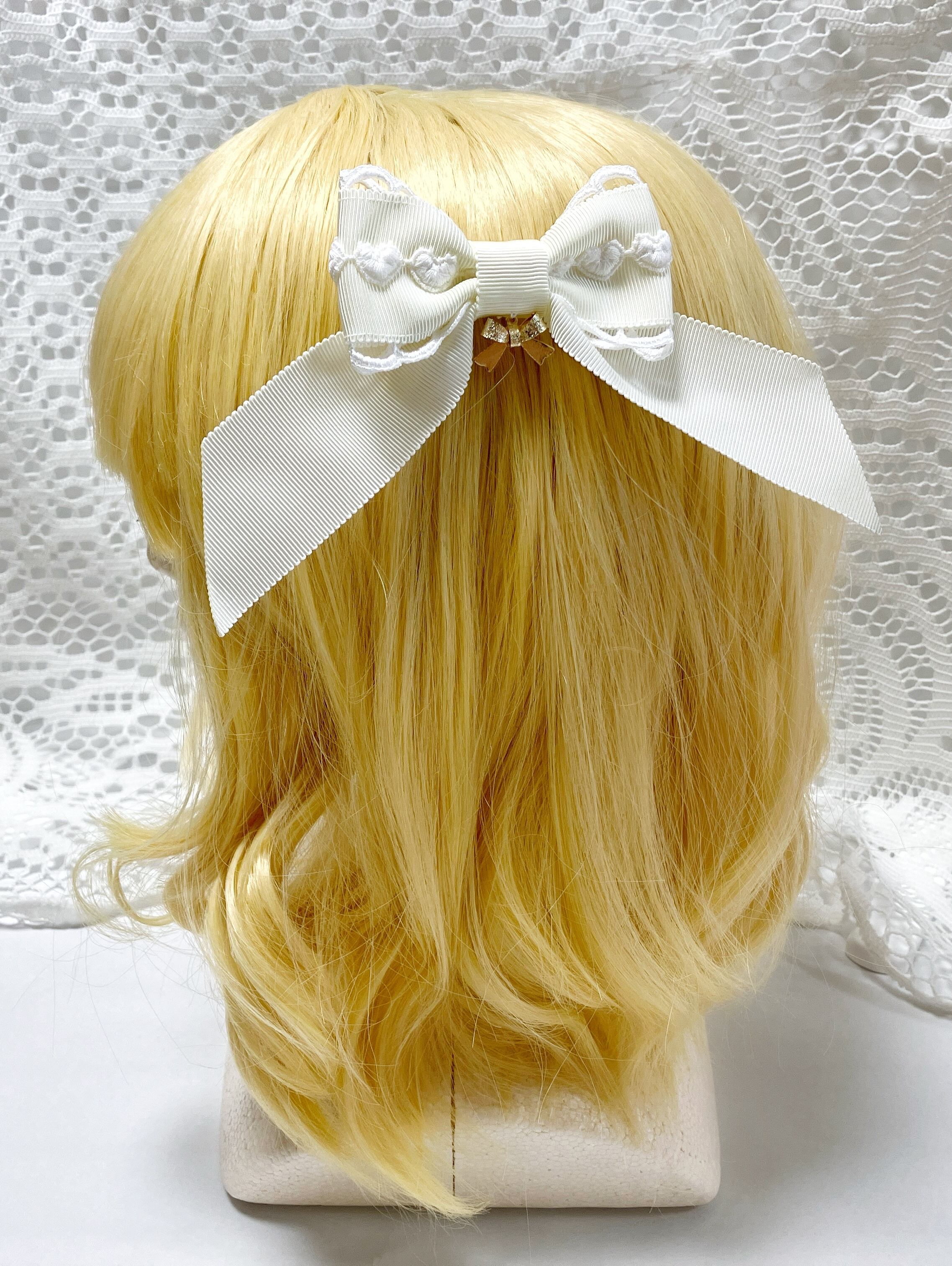 ケーキのようなグログランリボンにクリームみたいなハートブレードが可愛いリボンクリップです。