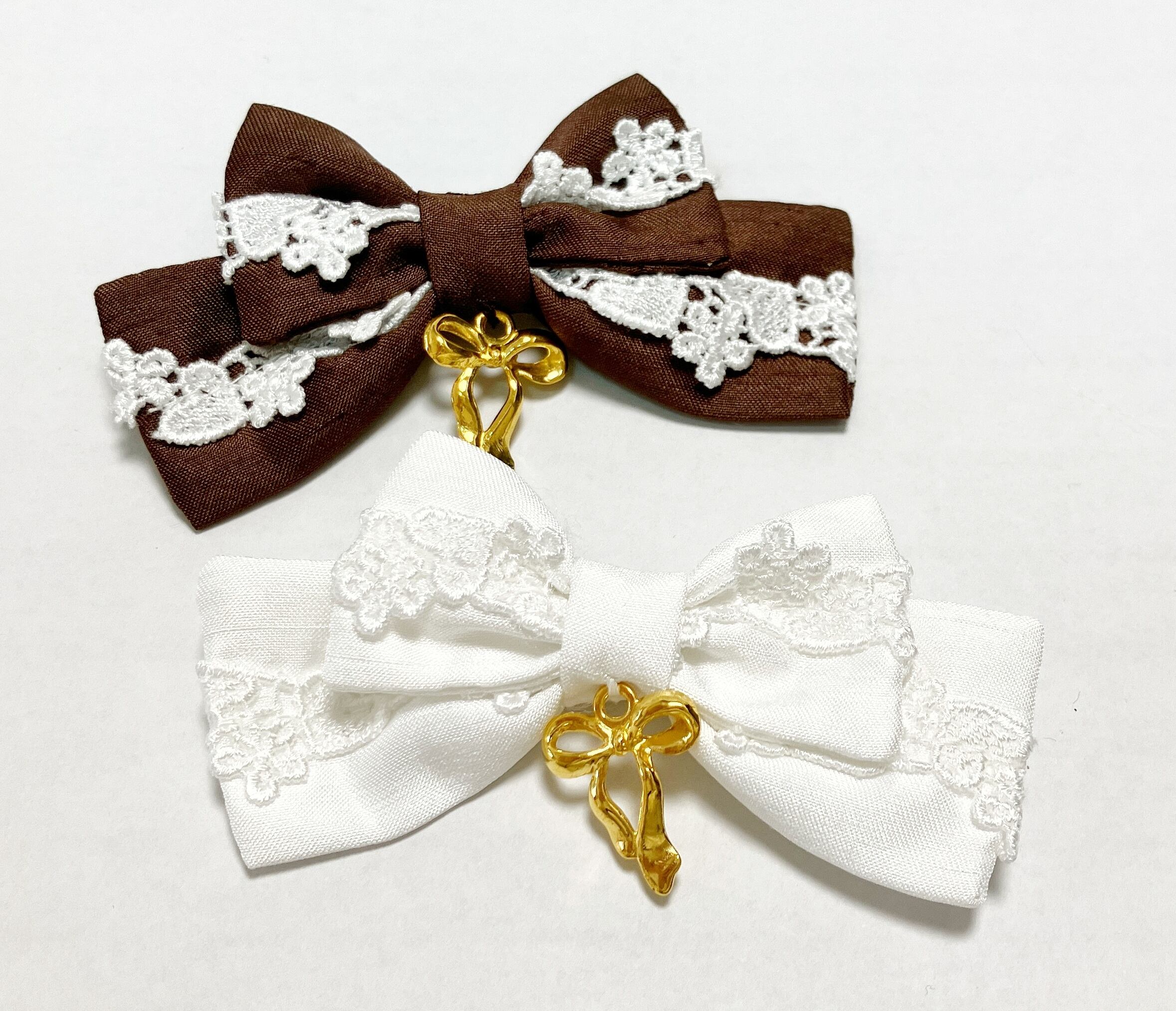 サイドリボンがクリップになっているので1つで2パターンのデザインが楽しめるお品物です。