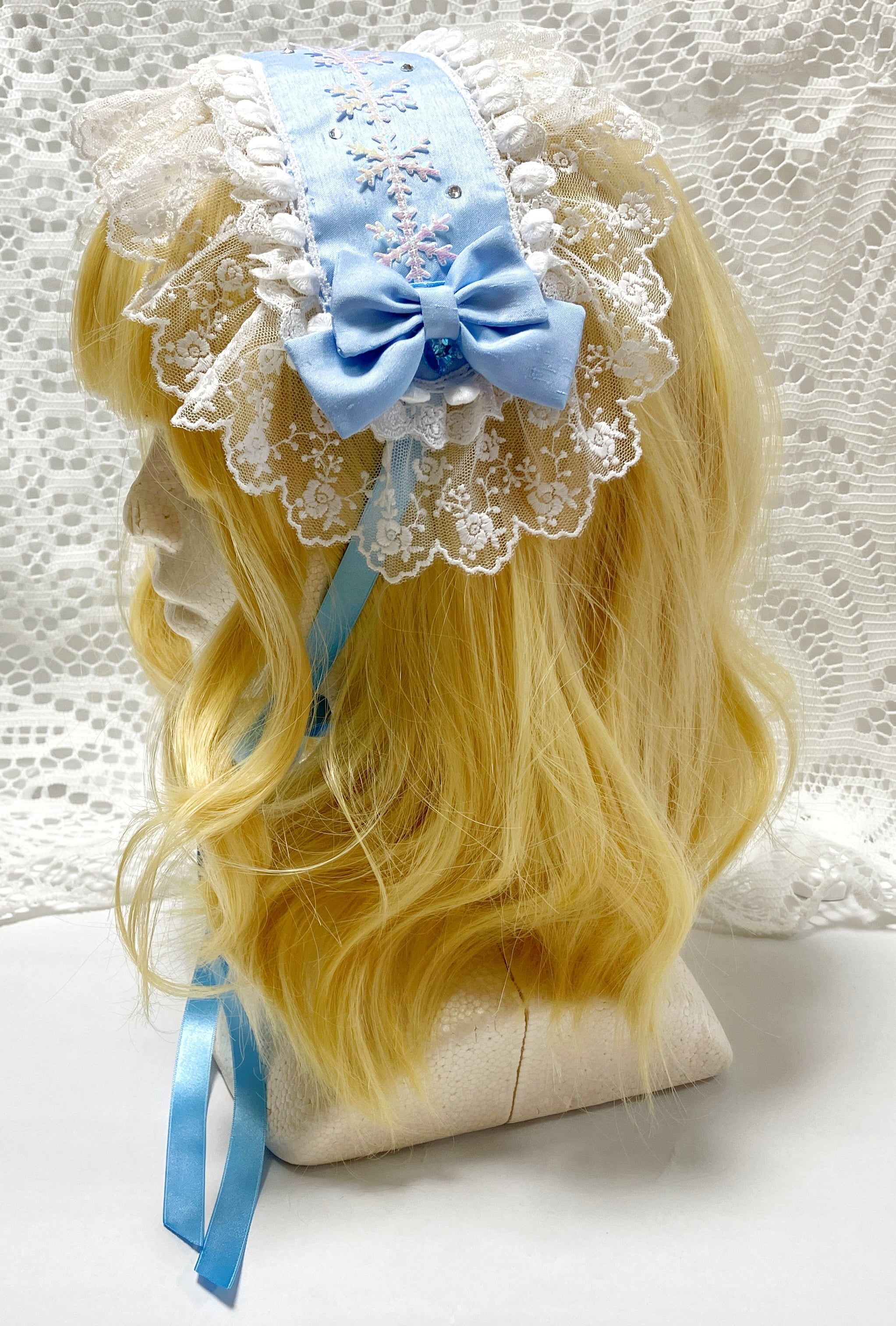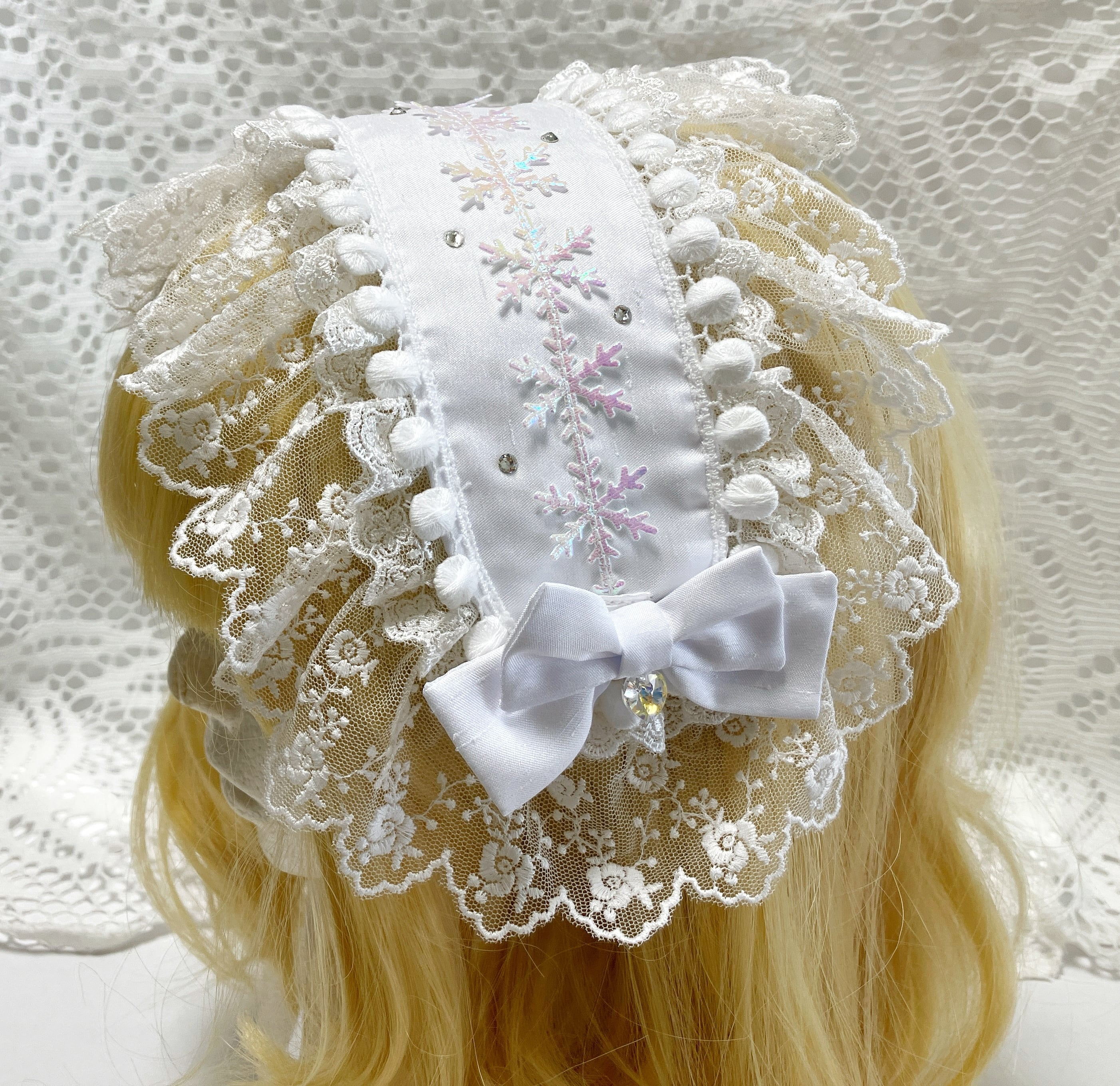 オーロラカラーの雪の結晶モチーフにクリスタルガラスを散りばめた冬の雪景色をイメージしたヘッドドレスです。