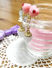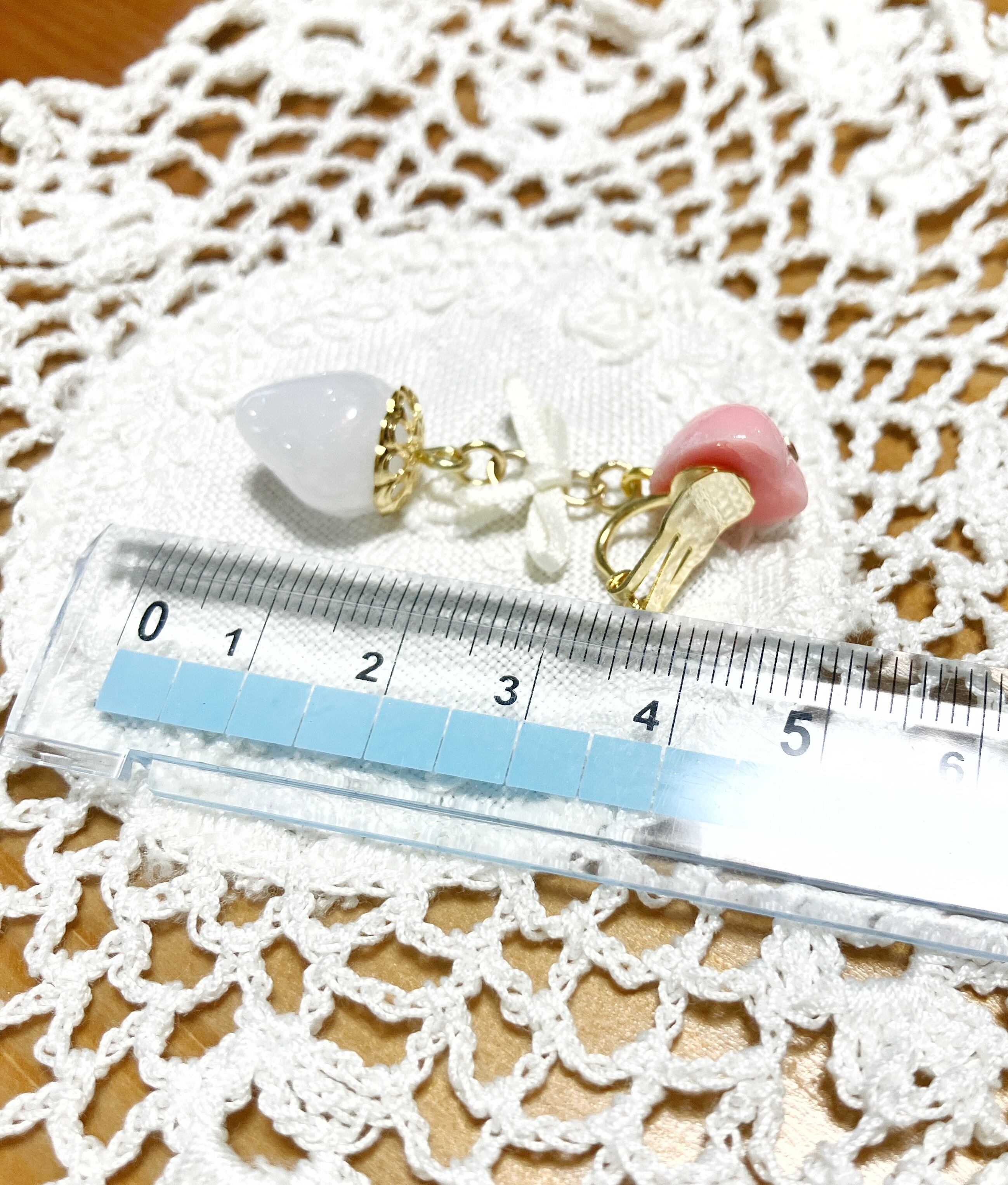キラリと光るラインストーンを飾ったいちごチョコレートと白いちごをデザインしたイヤリングです。